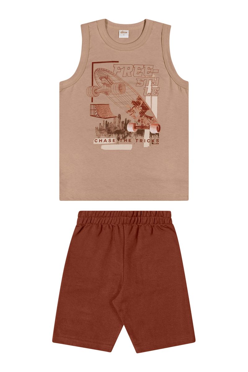 • Conjunto composto por regata e bermuda • Feito em meia malha e moletom sem felpa • Possui estampa frontal • Elástico no cós • Ideal para momentos de lazer