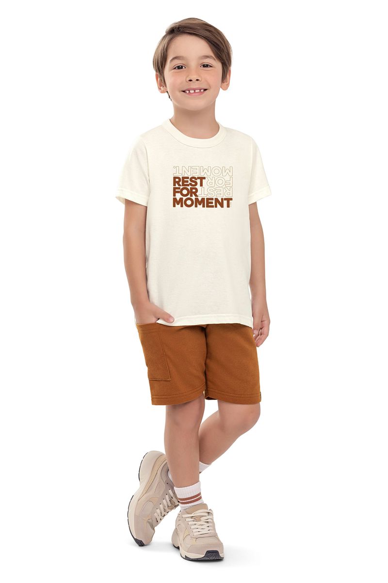 • Conjunto composto por camiseta e bermuda • Feito em meia malha e moletom sem felpa • Possui estampa com puff texturizado • Possui elástico no cós • Possui bolso lateral • Ideal para passeios