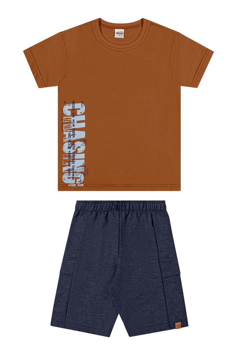 Conjunto Infantil Menino Estampa Lateral Elian Marrom REF: 241437-8041