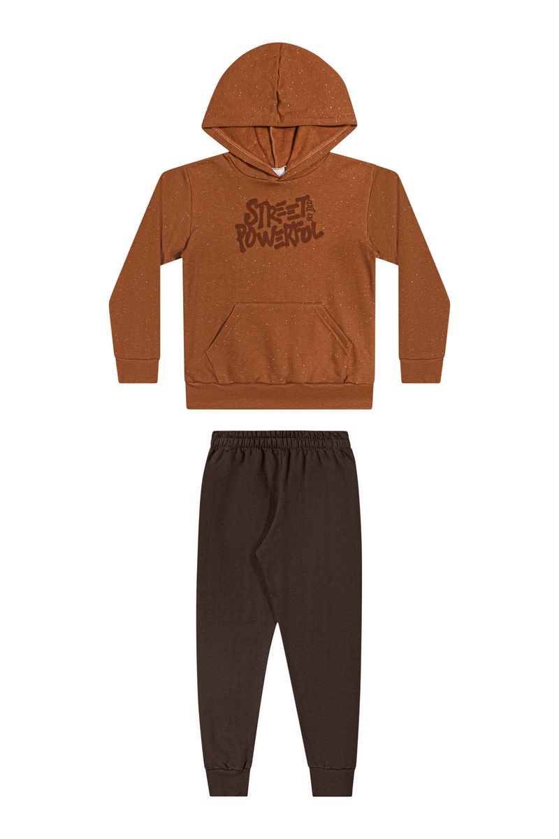 • Conjunto composto por blusão e calça • Feito em moletom botonê e moletom felpado • Possui mangas longas • Possui capuz e bolso • Estampa com tema urbano • Elástico no cós • Ideal para passeios e momentos de lazer