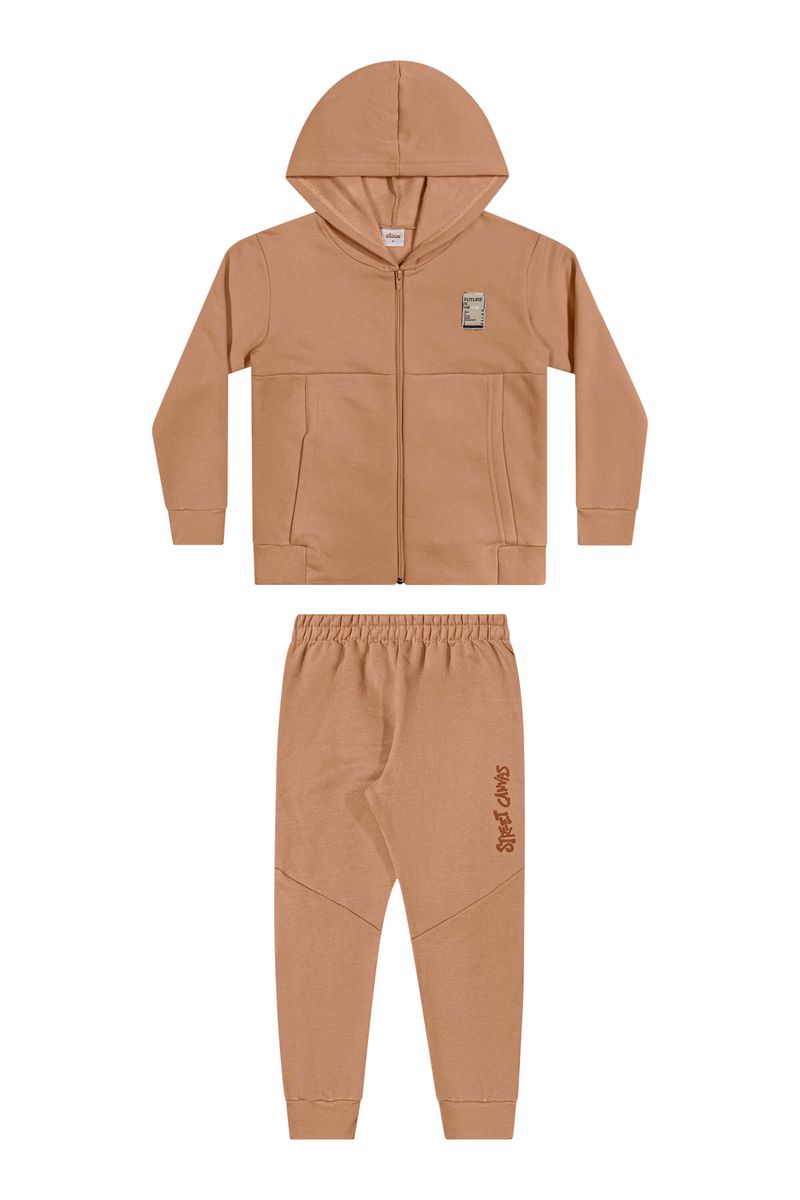 • Conjunto composto por jaqueta e calça • Feito em moletom felpado e moletom colors felpado • Possui mangas longas • Possui capuz e bolsos • Abertura frontal em zíper • Estampa no estilo streetwear • Elástico no cós • Ideal para momentos de lazer