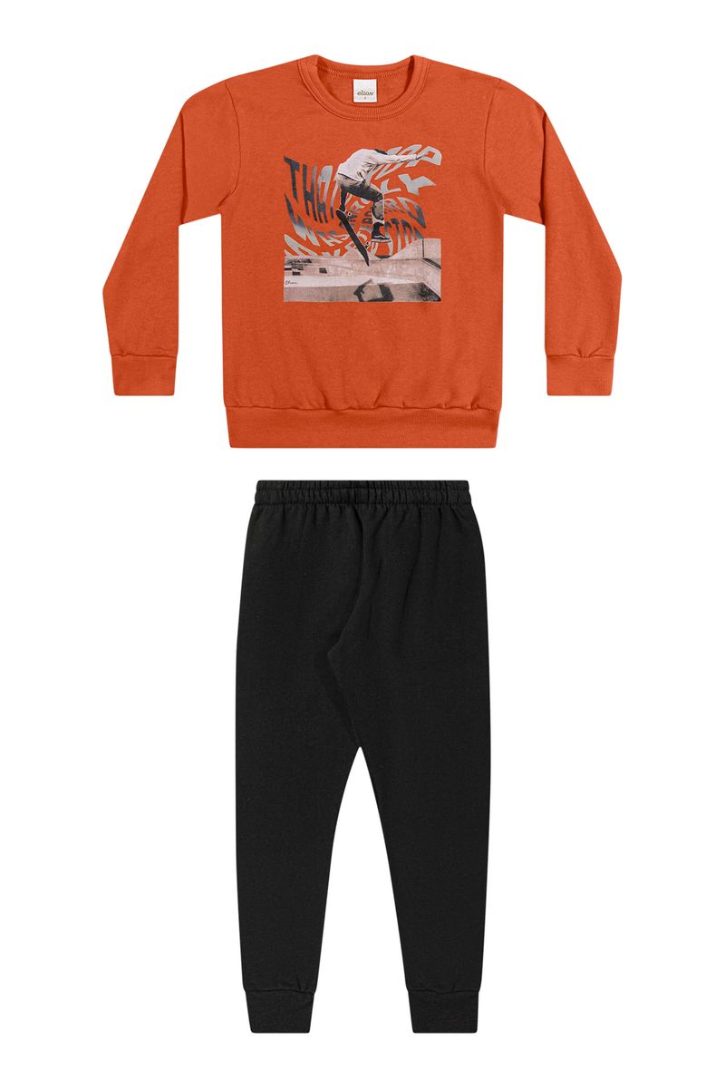 • Conjunto composto por blusão e calça • Feito em moletom felpado • Possui mangas longas • Estampa com tema de esportes • Elástico no cós • Ideal para passeios e momentos de lazer