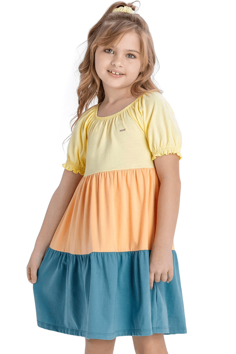 O vestido infantil menina colorido Elian é feito de meia malha penteada, o que significa que ele é não só lindo, mas também super confortável. Esse tecido é muito macio, ideal para a pele delicada das crianças. Além disso, ele é soltinho, permitindo que sua filha se mova à vontade, seja para brincar, correr ou apenas se divertir. Com um design em blocos de cores, este vestido se destaca pela disposição inteligente das cores, que segue as tendências da moda infantil. O amarelo, em especial, ilumina a peça, trazendo um visual charmoso e encantador. Este vestido está sempre pronto para qualquer situação, desde um dia de diversão no parque até uma festinha com os amigos.