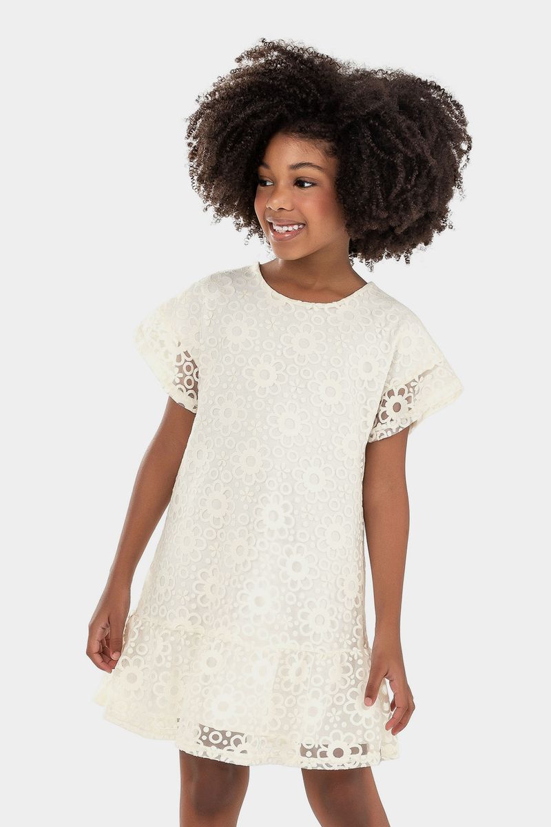 InfantilMeninasVestidos MeninasVestido Infantil Menina Floral Elian Bege