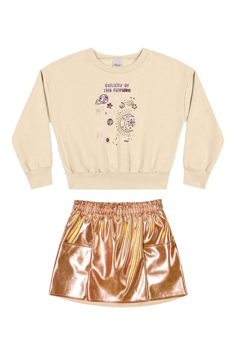 InfantilMeninasConjuntos MeninasConjunto Infantil Menina Estampa Galáxia Elian Bege
