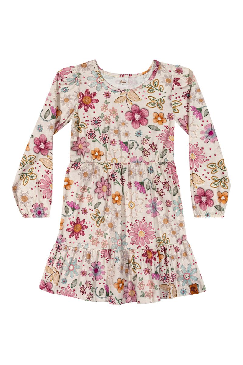 Vestido Infantil Menina Manga Longa Babados Floral Elian Bege REF: 251869-2037