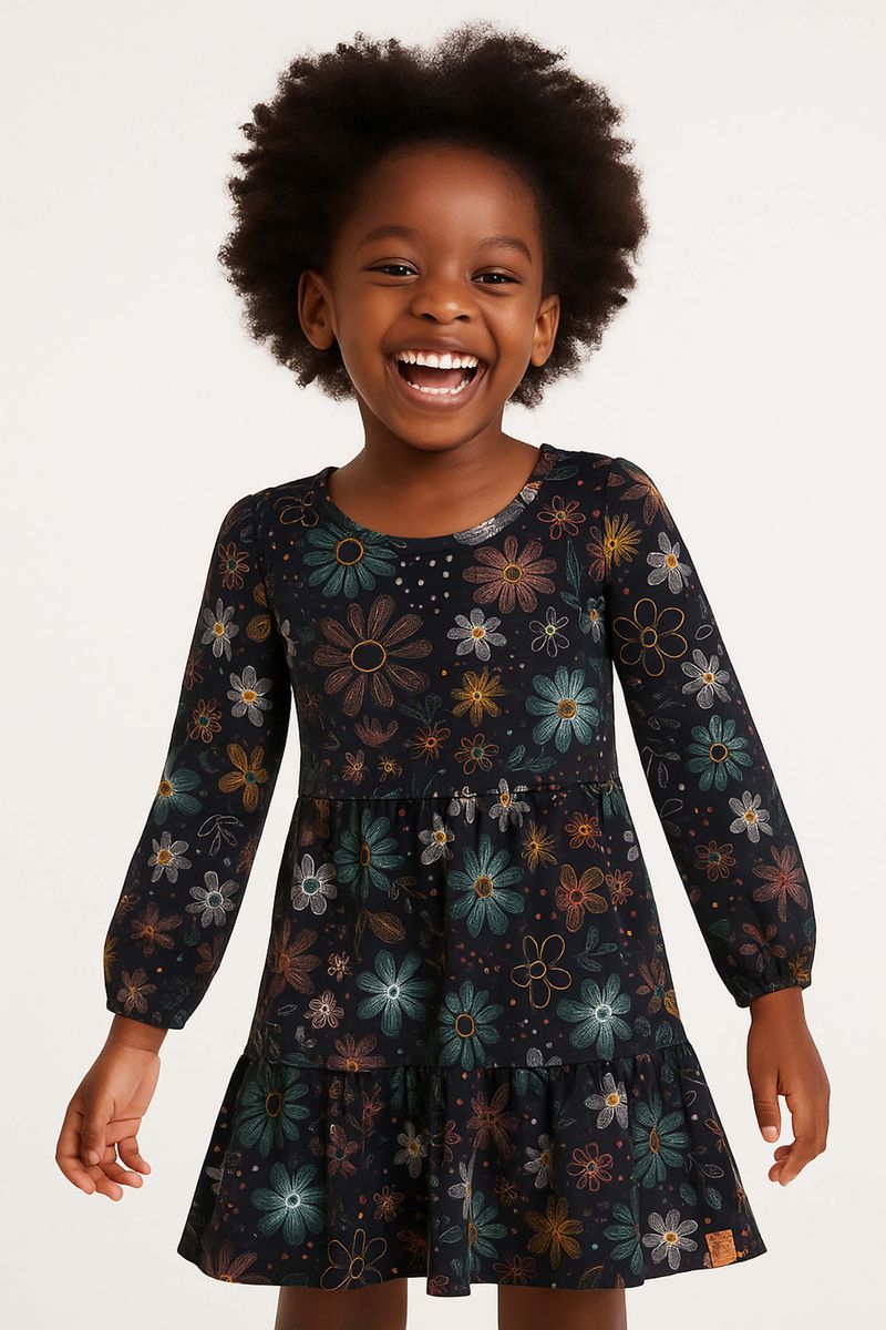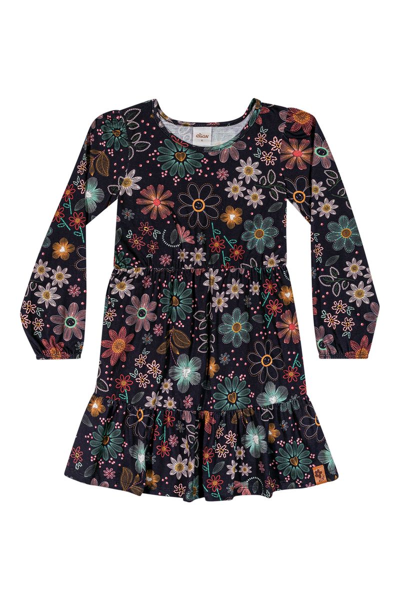 Vestido Infantil Menina Manga Longa Babados Floral Elian Preto REF: 251869-7001