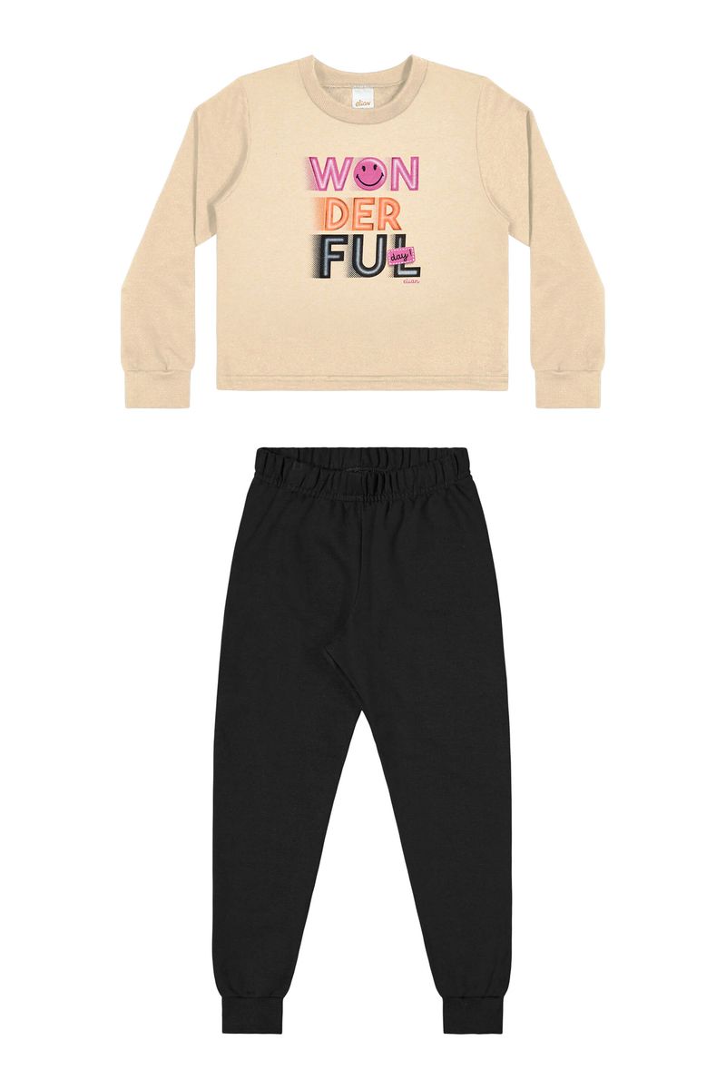Conjunto Infantil Menina Moletom Estampado Elian Bege REF: 251878-2057