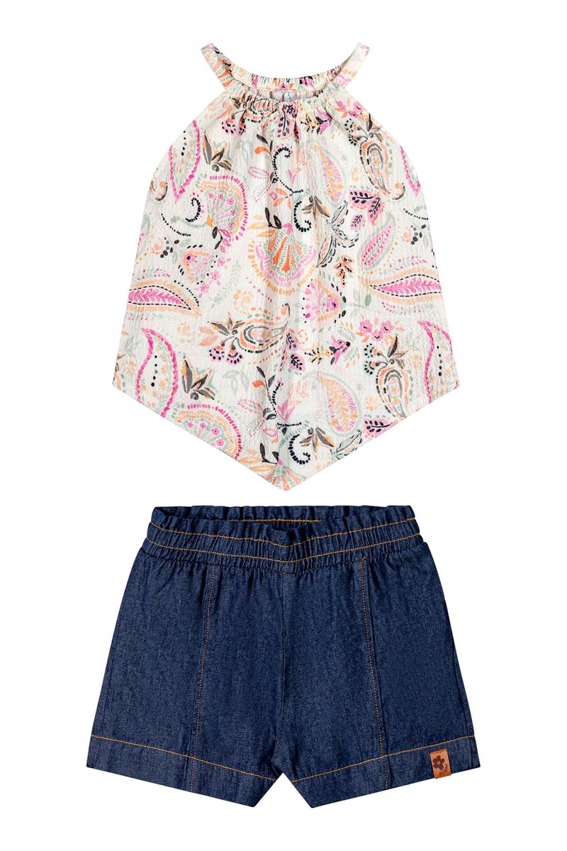 InfantilMeninasConjuntos MeninasConjunto Infantil Menina Regata Frente Única Elian Bege