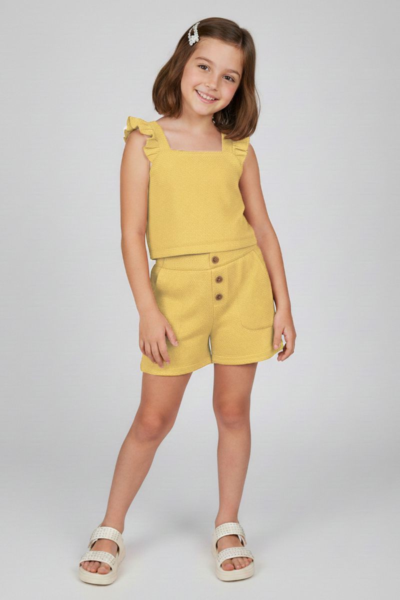 • Conjunto composto por regata e short • Feito em new croche gloss • Possui alças com babados • Possui elástico no cós • Possui forro • Possui bolsos • Ideal para passeios e momentos especiais