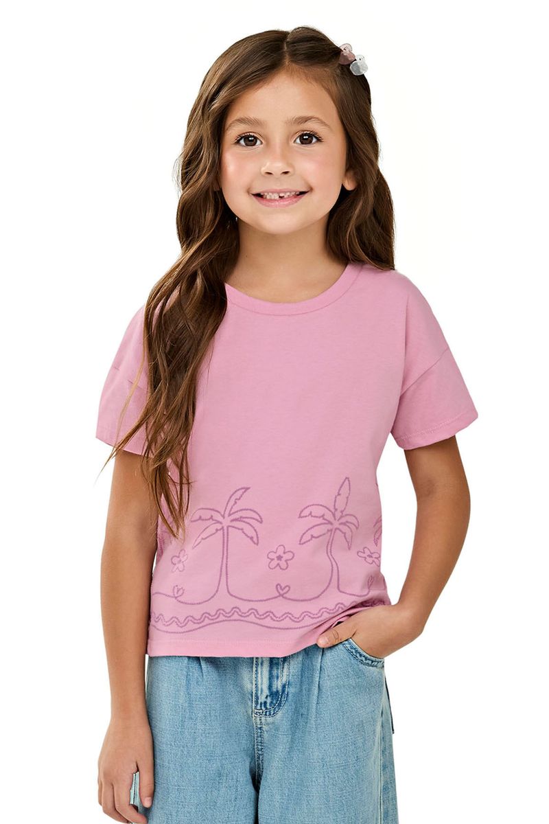 Blusa Infantil Menina Manga Curta Tropical Elian Rosa REF: 251904-4022