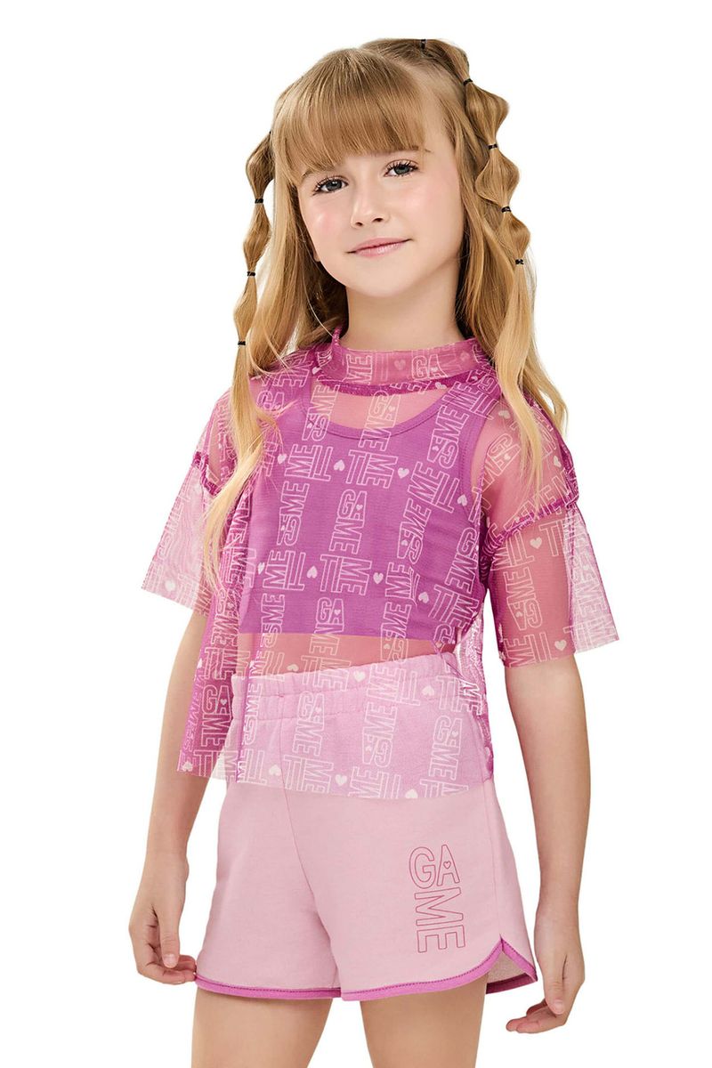 Conjunto Infantil Menina Sobreposição Com Tule Elian Rosa REF: 251907-4122
