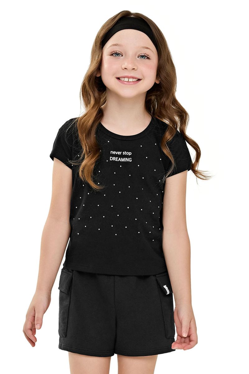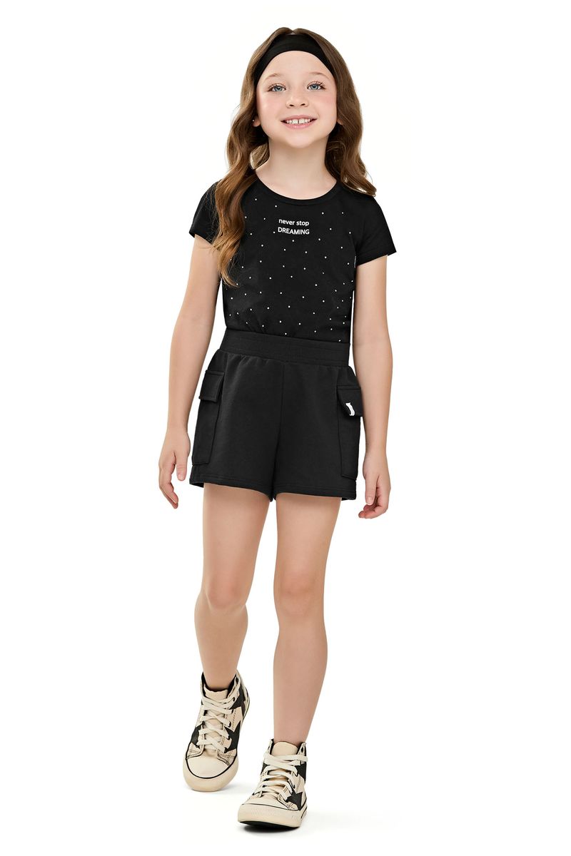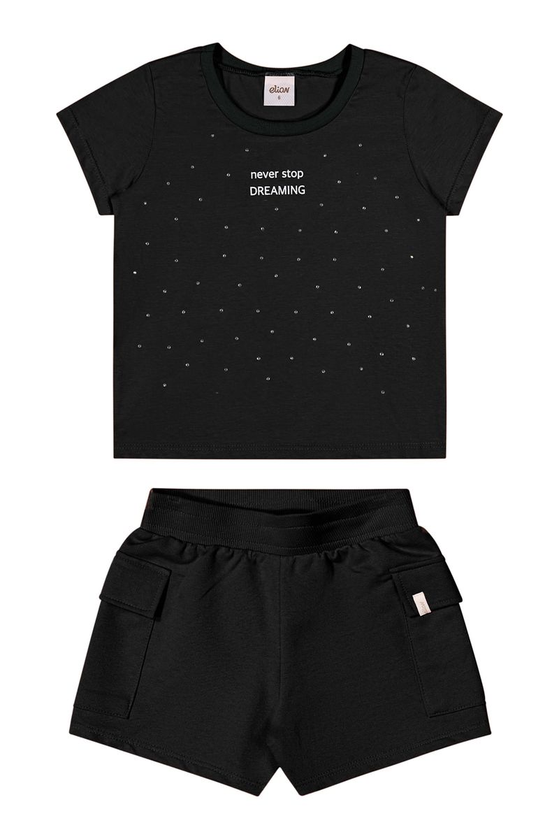 Conjunto Curto Infantil Menina Com Strass Elian Preto REF: 251909-7001