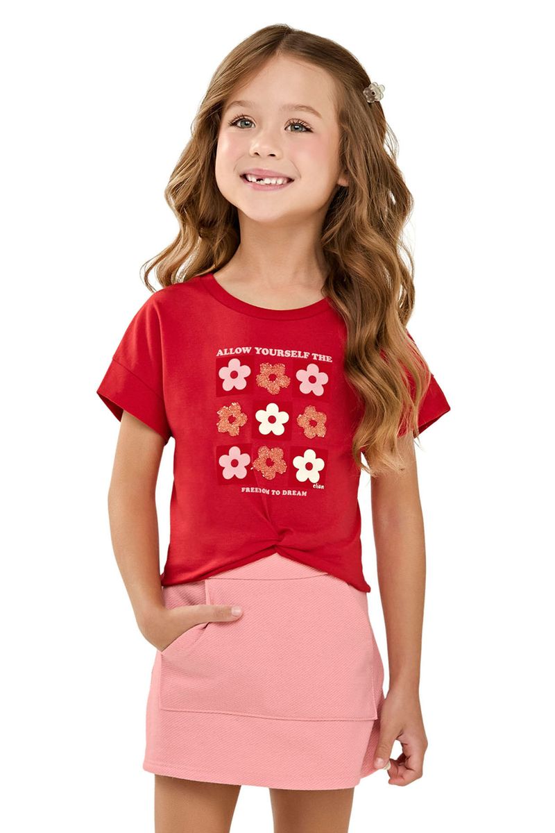 Conjunto Infantil Menina Floral Blusa e Short Saia Elian Vermelho REF: 251911-4010