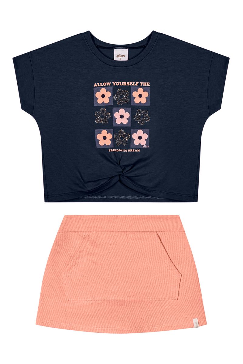 Conjunto Infantil Menina Floral Blusa e Short Saia Elian Azul REF: 251911-6751