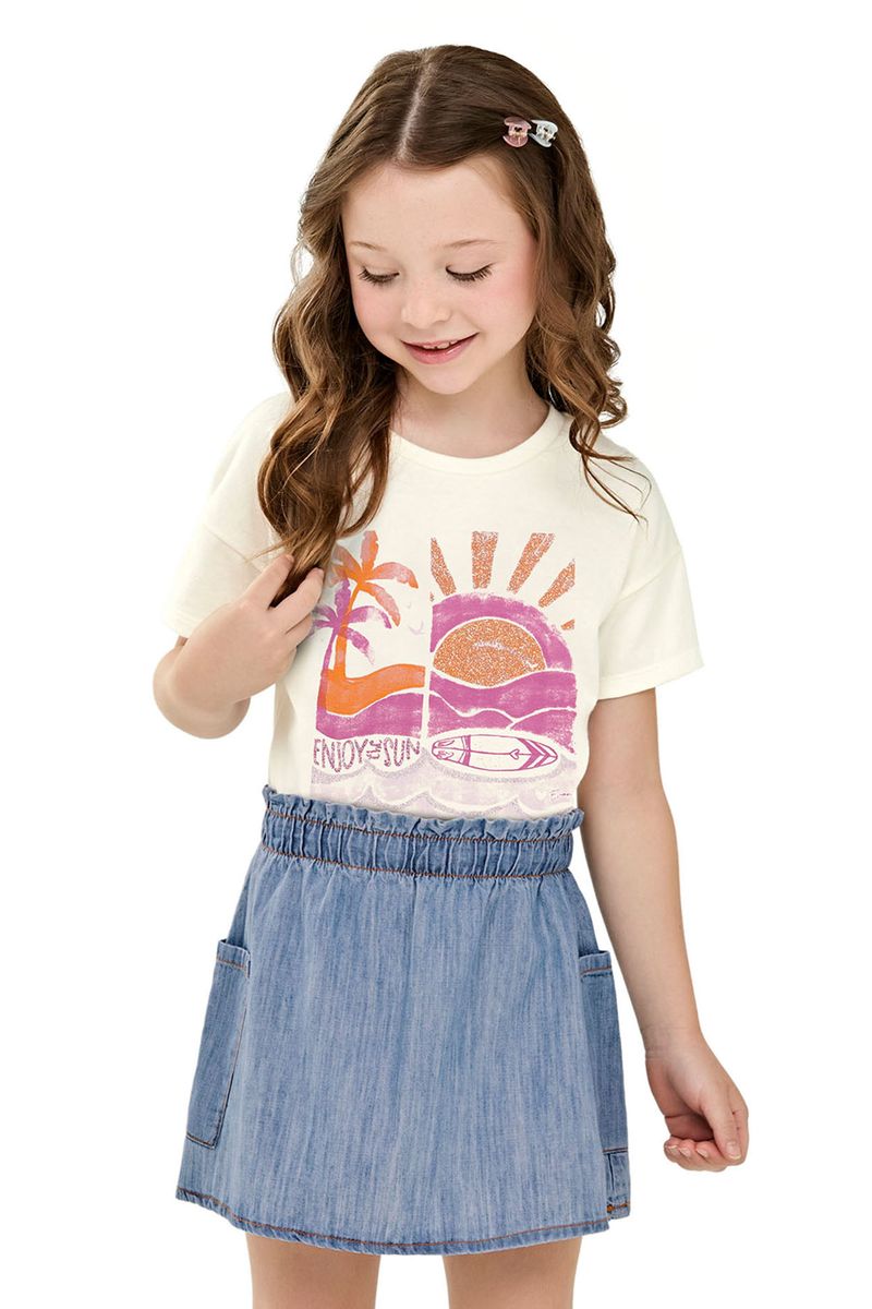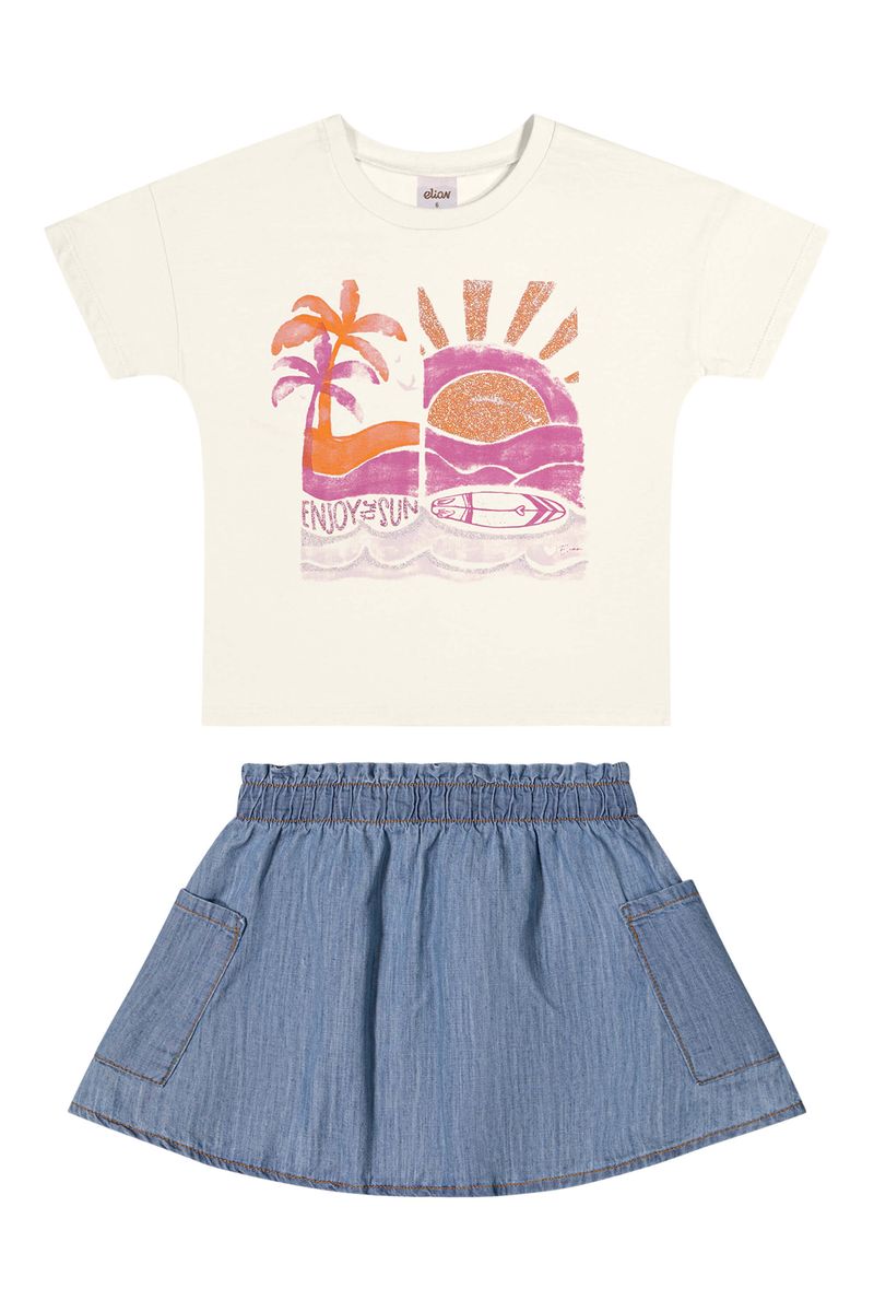 Conjunto Infantil Menina Blusa e Saia Jeans Tropical Elian Bege REF: 251912-2037
