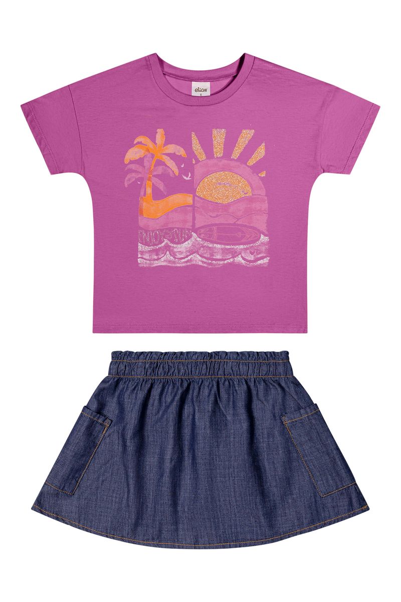 Conjunto Infantil Menina Blusa e Saia Jeans Tropical Elian Rosa REF: 251912-4022