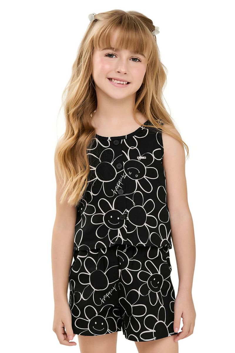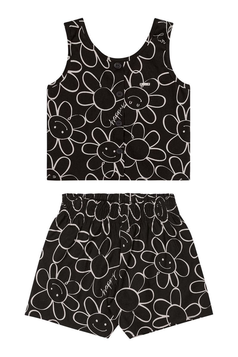 Conjunto Infantil Menina Floral Tricoline Elian Preto REF: 251914-7001