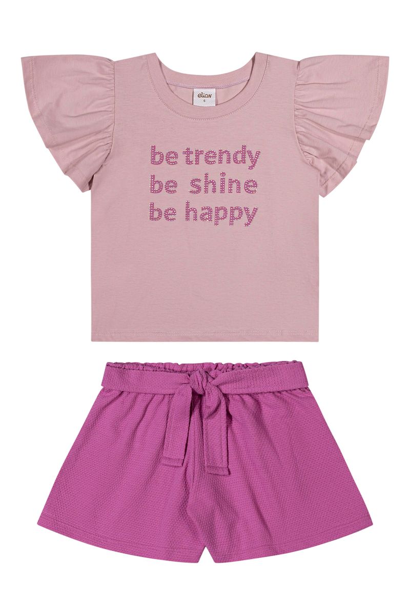 Conjunto Infantil Menina Blusa e Short Com Laço Elian Rosa REF: 251915-4117