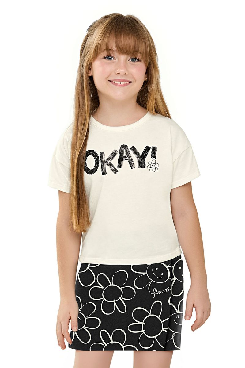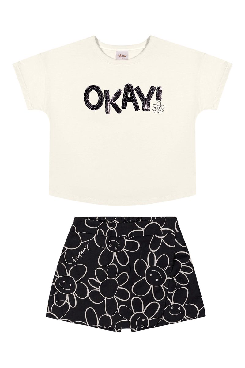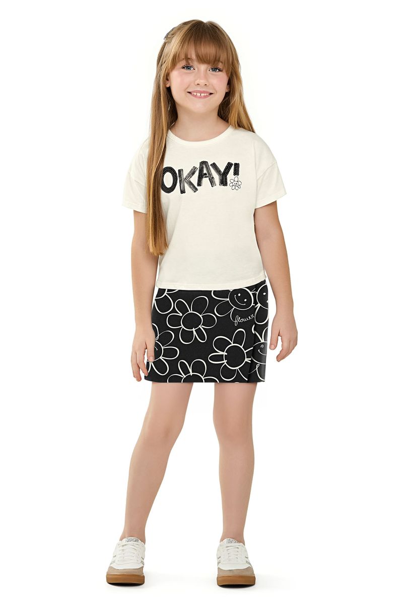 Conjunto Infantil Menina Blusa e Short Saia Floral Elian Bege REF: 251916-2037