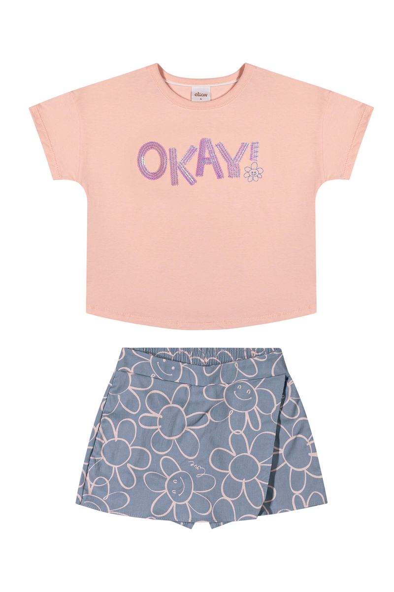 Conjunto Infantil Menina Blusa e Short Saia Floral Elian Rosa REF: 251916-4119