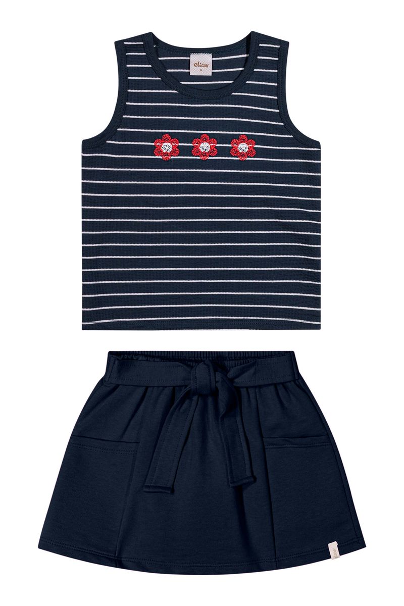 InfantilMeninasConjuntos MeninasConjunto Curto Infantil Menina Listrado Floral Elian Azul