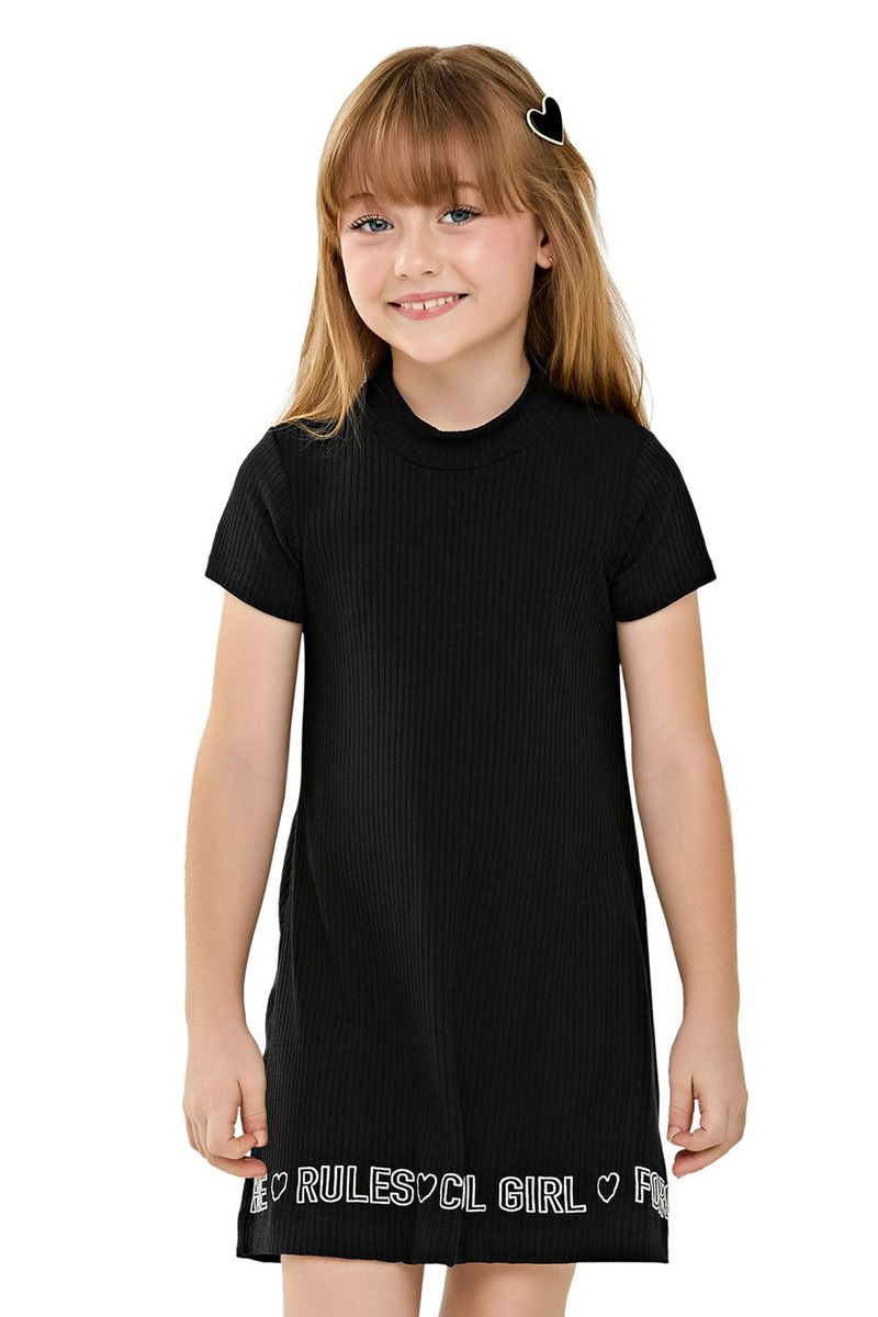 Vestido Infantil Menina Malha Canelada Elian Preto REF: 251922-7001