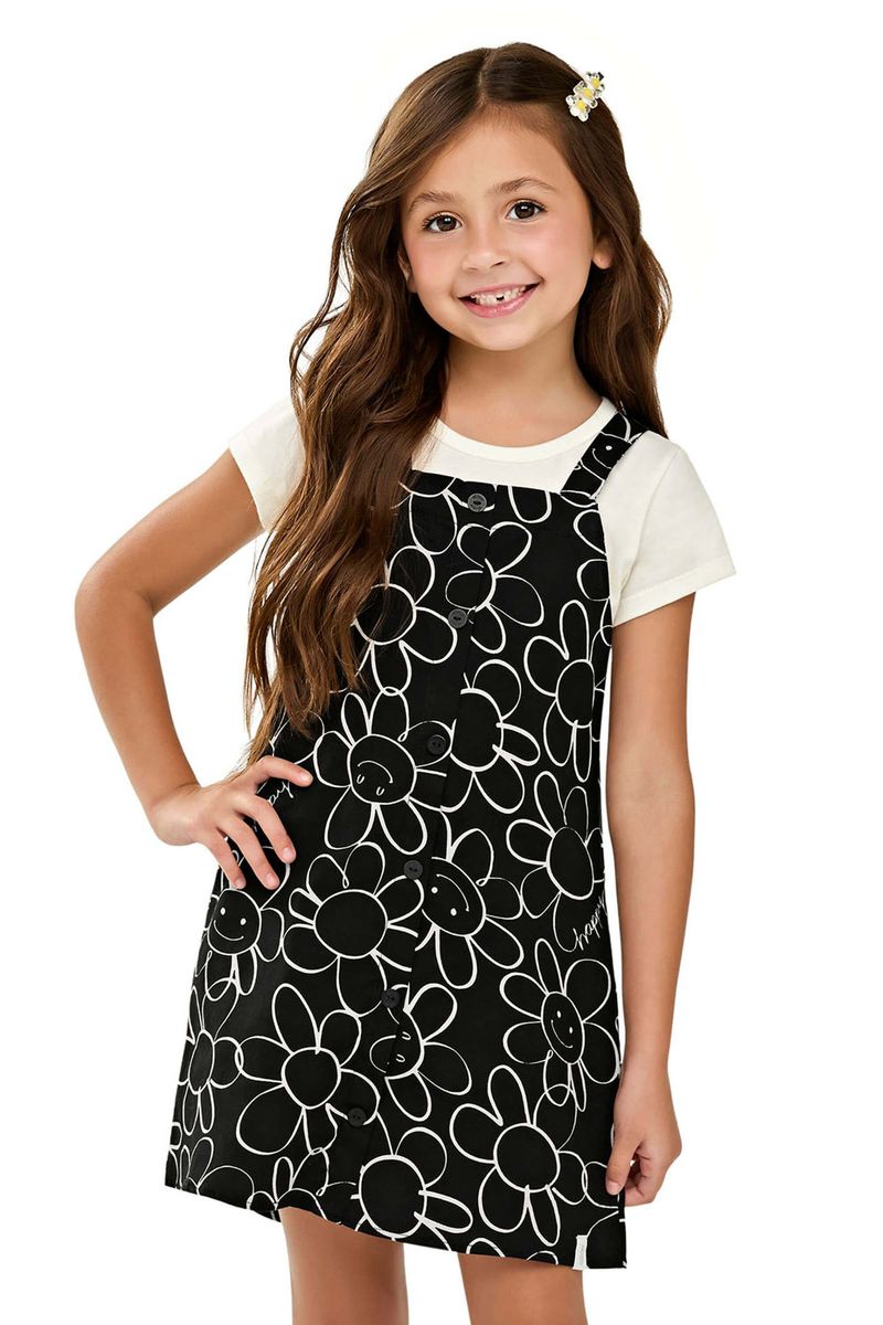 Conjunto Infantil Menina Blusa e Vestido Floral Elian Preto REF: 251929-2037