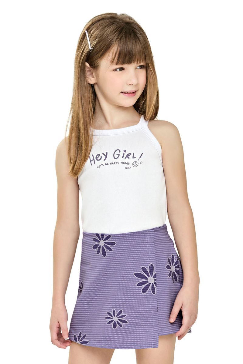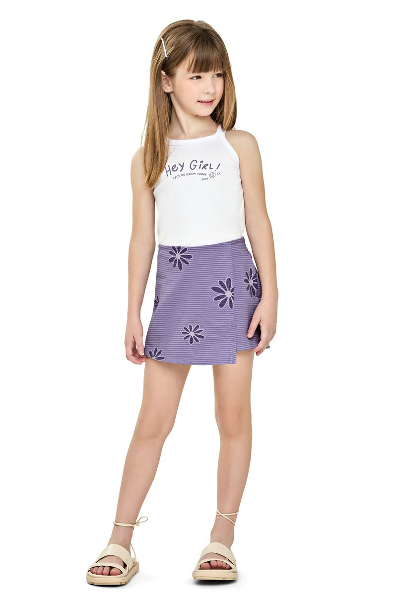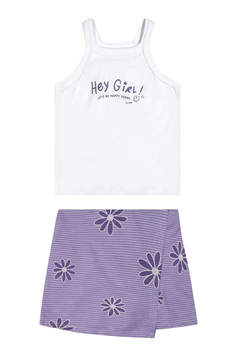 • Conjunto composto por regata e short saia • Feito em ribana leve e malha flamê bicolor • Estampa floral • Elástico no cós • Ideal para passeios e encontros em família