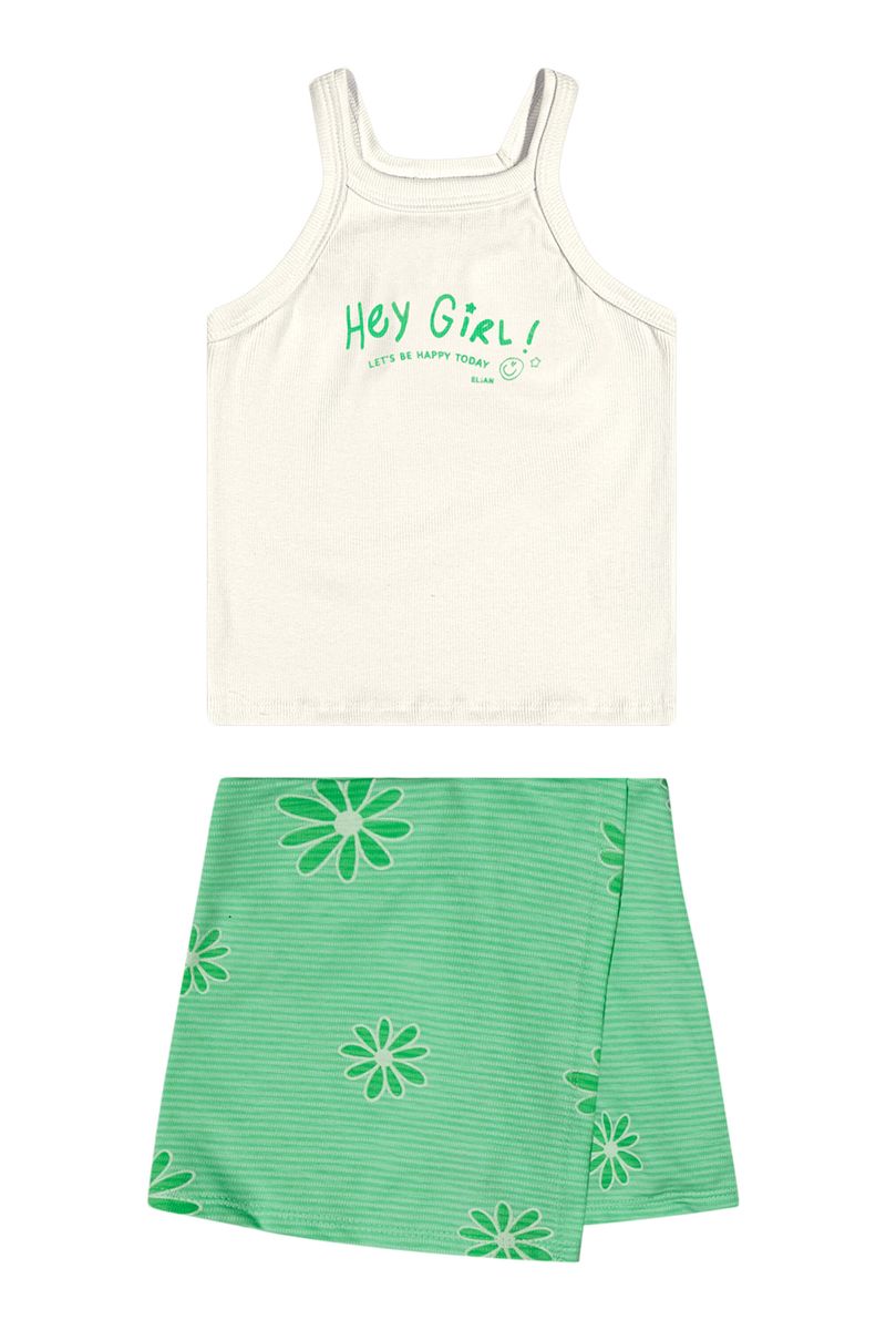• Conjunto composto por regata e short saia • Feito em ribana leve e malha flamê bicolor • Estampa floral • Elástico no cós • Ideal para passeios e encontros em família