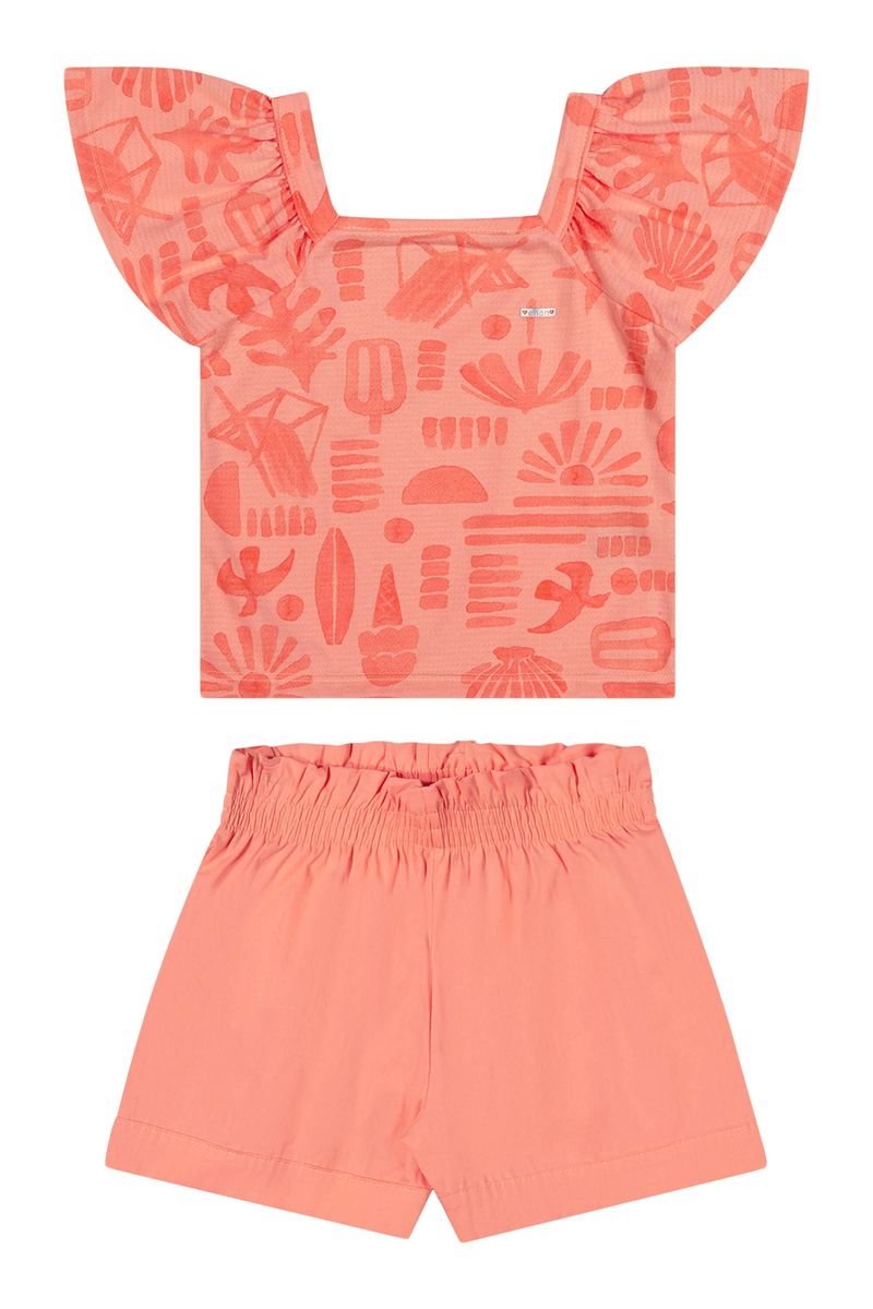 • Conjunto composto por blusa e short • Feito em malha trabalhada e tricoline • Mangas curtas amplas • Estampa com elementos tropicais em efeito carimbo • Elástico no cós • Ideal para passeios ao ar livre