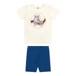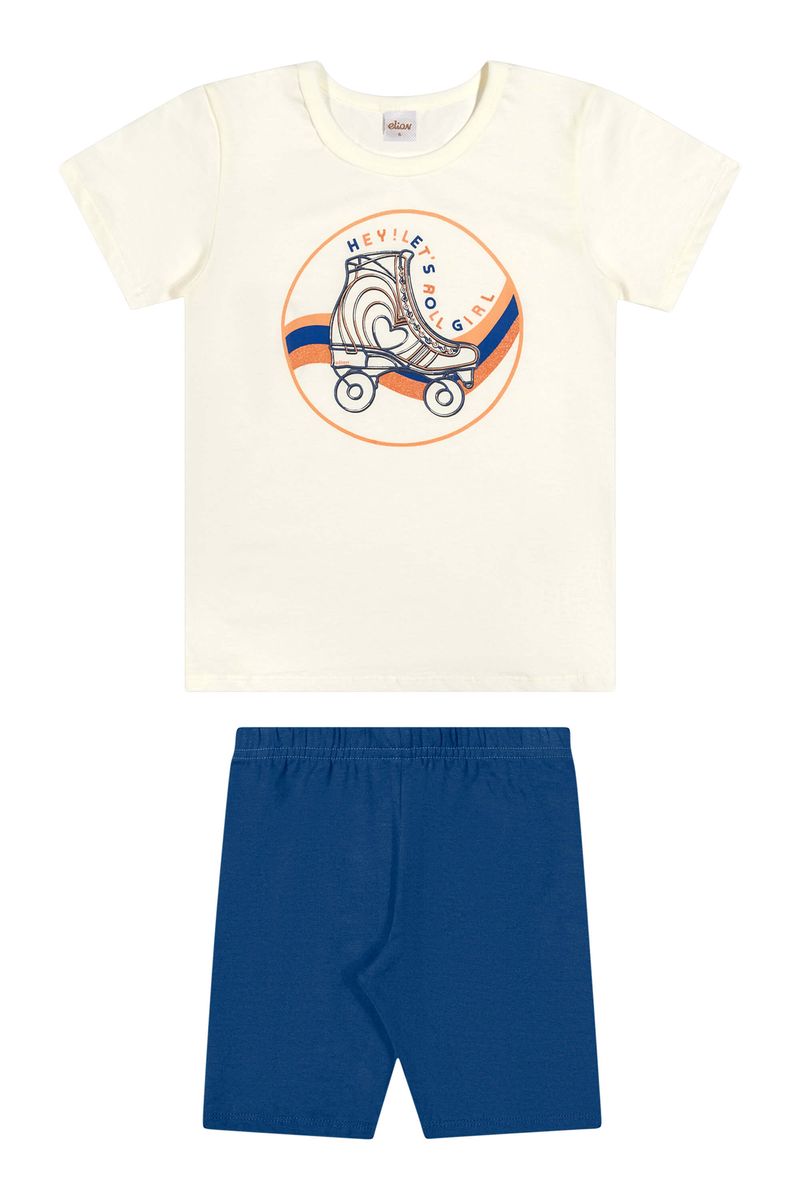 • Conjunto composto por blusa e ciclista • Feito em meia malha e cotton leve • Estampa de patins com efeito puff e brilhos • Elástico no cós • Ideal para momentos de diversão
