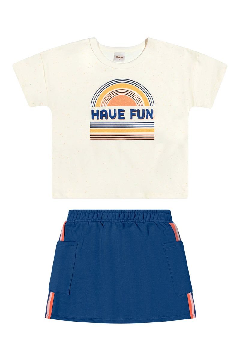 • Conjunto composto por blusa e saia • Feito em malha botonê e moletom sem felpa • Estampa colorida com efeito puff e glitter • Elástico no cós • Possui short interno • Possui bolsos funcionais • Ideal para momentos de lazer com amigos