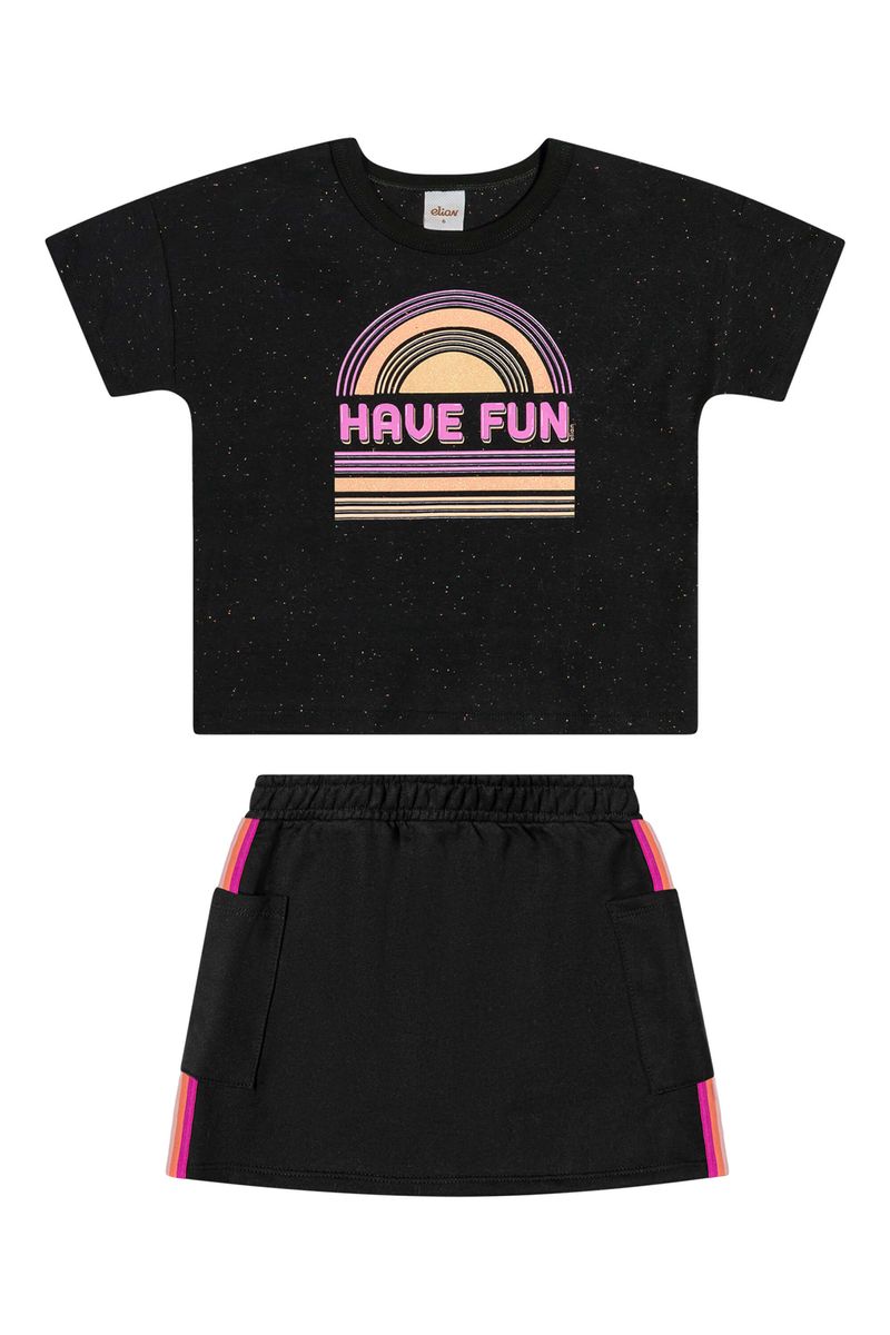 • Conjunto composto por blusa e saia • Feito em malha botonê e moletom sem felpa • Estampa colorida com efeito puff e glitter • Elástico no cós • Possui short interno • Possui bolsos funcionais • Ideal para momentos de lazer com amigos