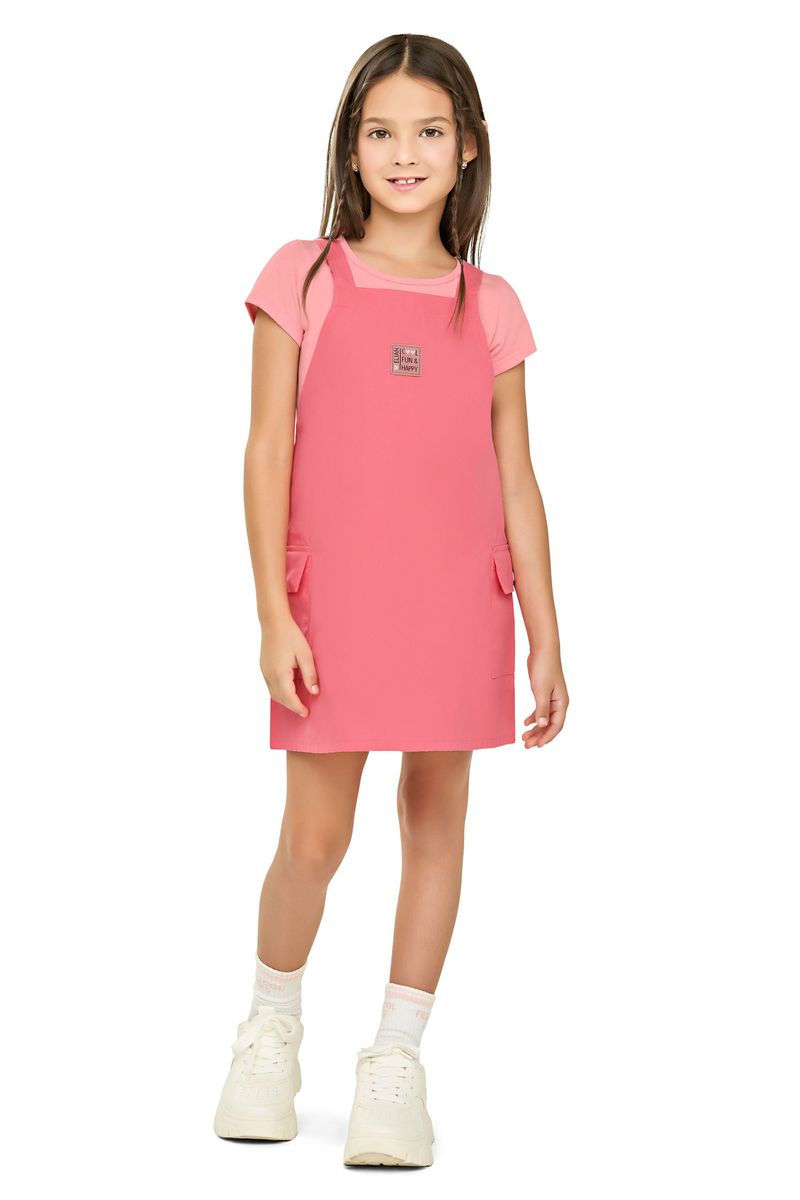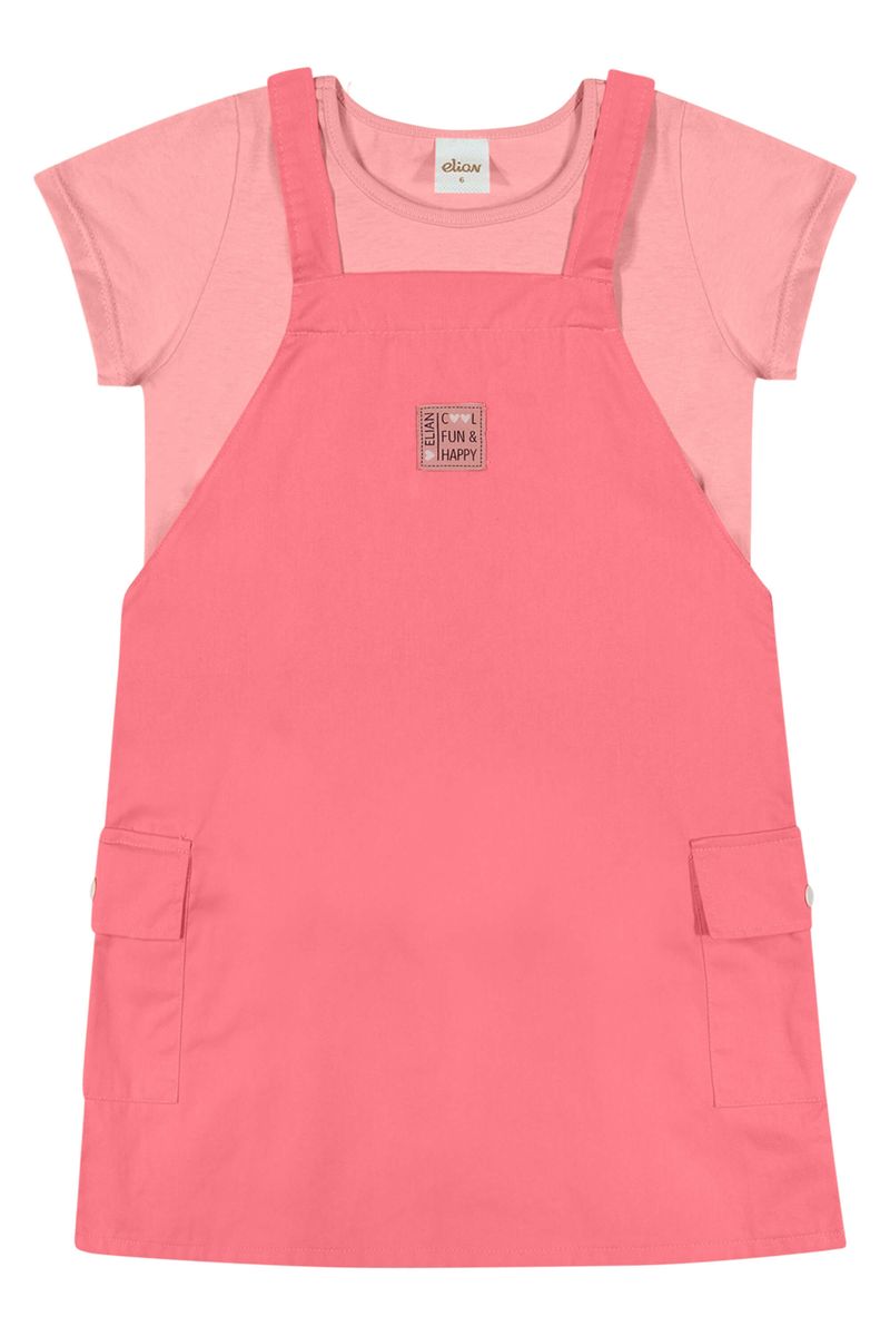 • Conjunto composto por blusa e vestido • Feito em meia malha e sarja • Blusa manga curta com estampa lisa • Vestido com alças e bolsos • Ideal para passeios em família e momentos de lazer