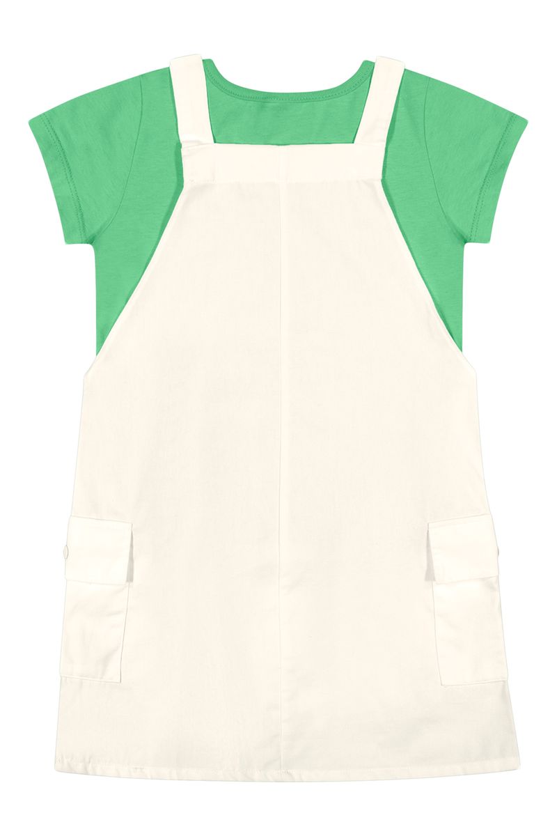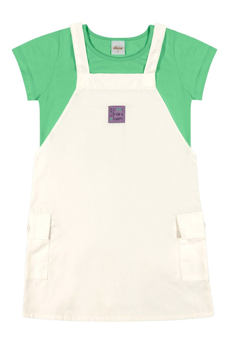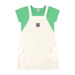 • Conjunto composto por blusa e vestido • Feito em meia malha e sarja • Blusa manga curta com estampa lisa • Vestido com alças e bolsos • Ideal para passeios em família e momentos de lazer