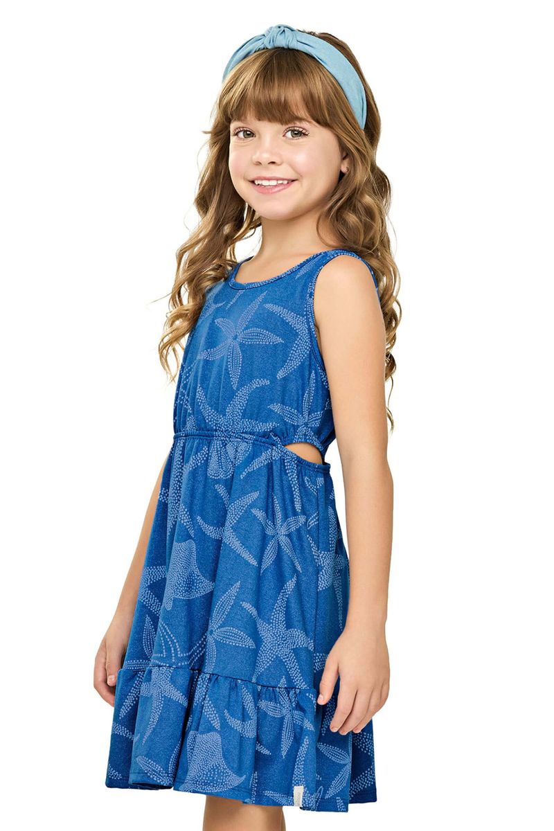 • Feito em meia malha • Estampa com estrelas-do-mar e elementos marítimos • Possui aberturas laterais em recorte • Modelagem soltinha com babados • Ideal para passeios e ocasiões casuais