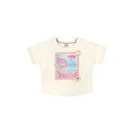 • Feito em meia malha • Estampa inspirada em selos postais com detalhes em brilho • Possui mangas curtas • Ideal para combinar com saias e shorts