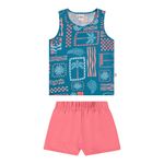 Conjunto Infantil Menina Folhagem Tropical Elian Azul REF: 251966-6111