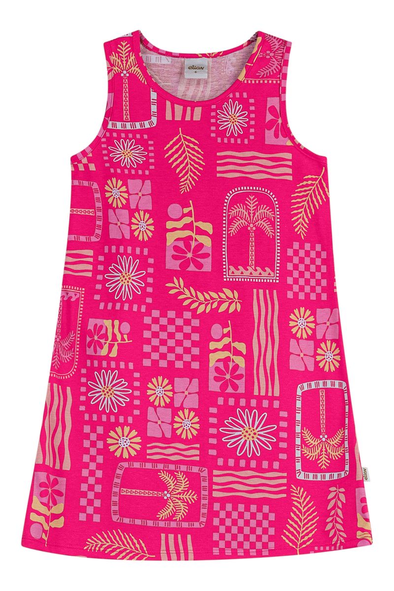 • Feito em meia malha • Estampa de folhagens, flores, coqueiros e formas geométricas • Modelagem reta soltinha • Ideal para o dia a dia, passeios e momentos de lazer