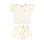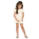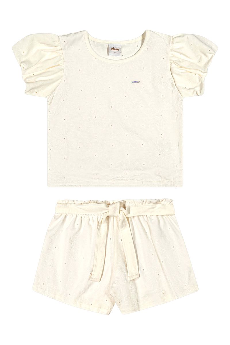 • Conjunto composto por blusa e short • Feito em malha devorê • Mangas curtas balonê • Elástico no cós com detalhe em amarração • Padronagem floral • Possui forro • Ideal para momentos especiais