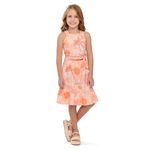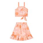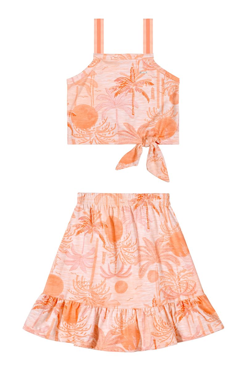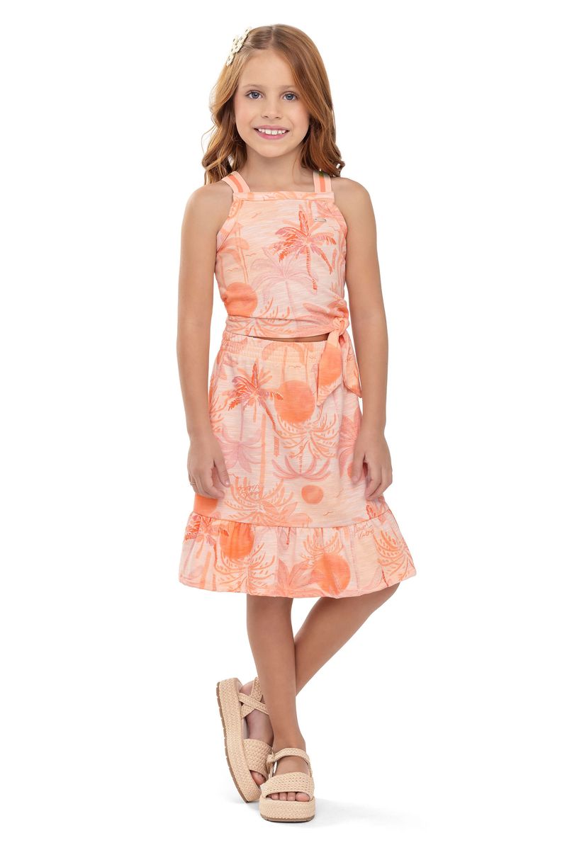 • Conjunto composto por regata e saia • Feito em malha flamê • Possui alças com elástico • Possui estampa tropical • Possui detalhe em amarração • Possui elástico no cós • Ideal para passeios e momentos ao ar livre