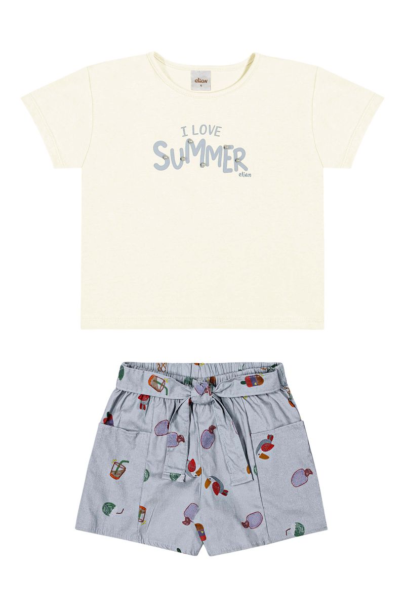 • Conjunto composto por blusa e short • Feito em meia malha e tricoline • Possui mangas curtas • Possui estampa tropical • Possui aplicações de pérolas • Possui elástico no cós • Possui detalhe em amarração • Possui bolsos laterais • Ideal para momentos de lazer