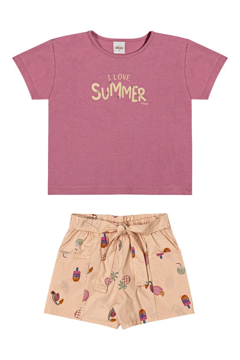 • Conjunto composto por blusa e short • Feito em meia malha e tricoline • Possui mangas curtas • Possui estampa tropical • Possui aplicações de pérolas • Possui elástico no cós • Possui detalhe em amarração • Possui bolsos laterais • Ideal para momentos de lazer