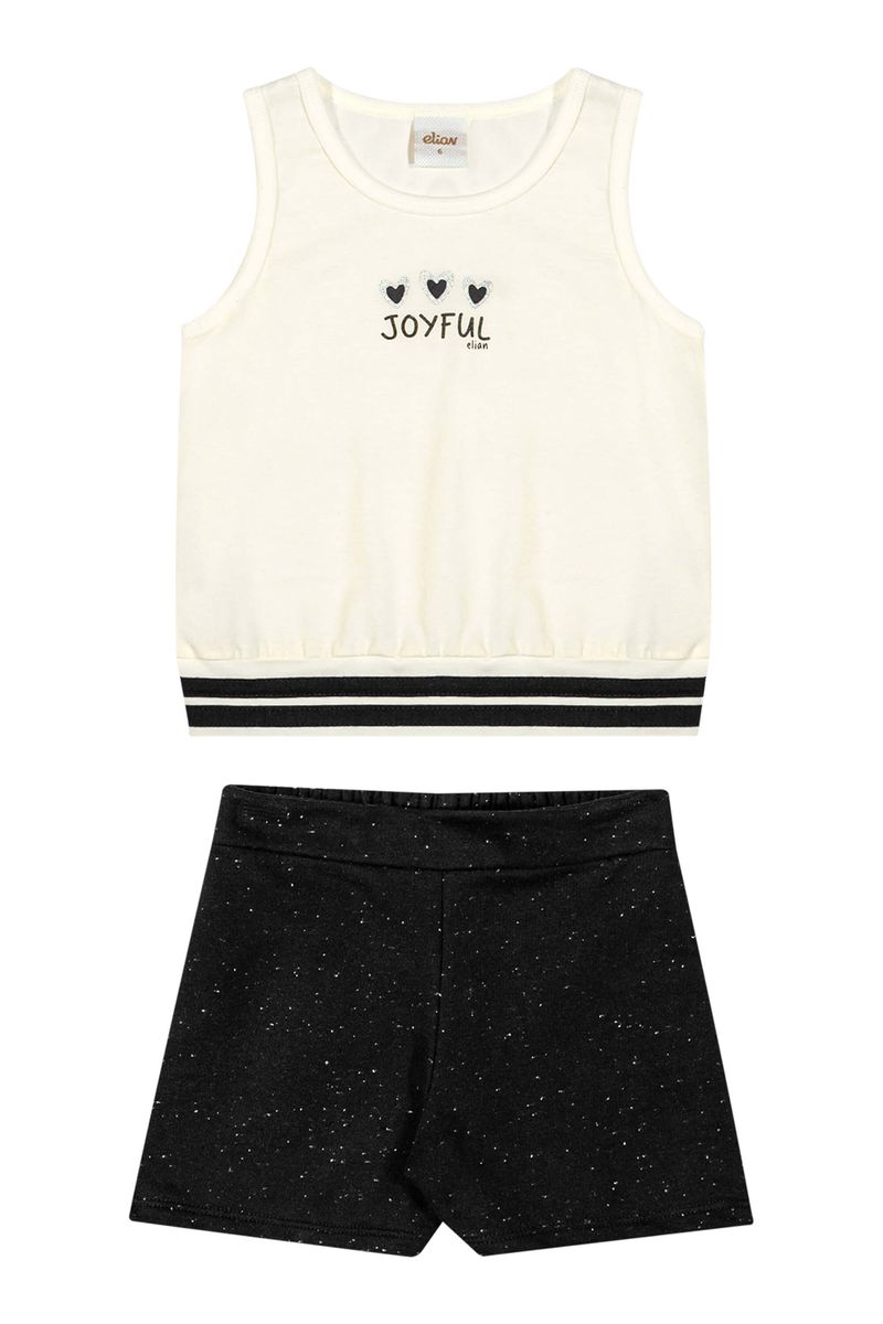 • Conjunto composto por regata e short • Feito em meia malha e moletom botonê • Possui barra com ribana listrada • Possui estampa com puff e glitter • Possui elástico no cós • Ideal para momentos de diversão e brincadeiras