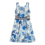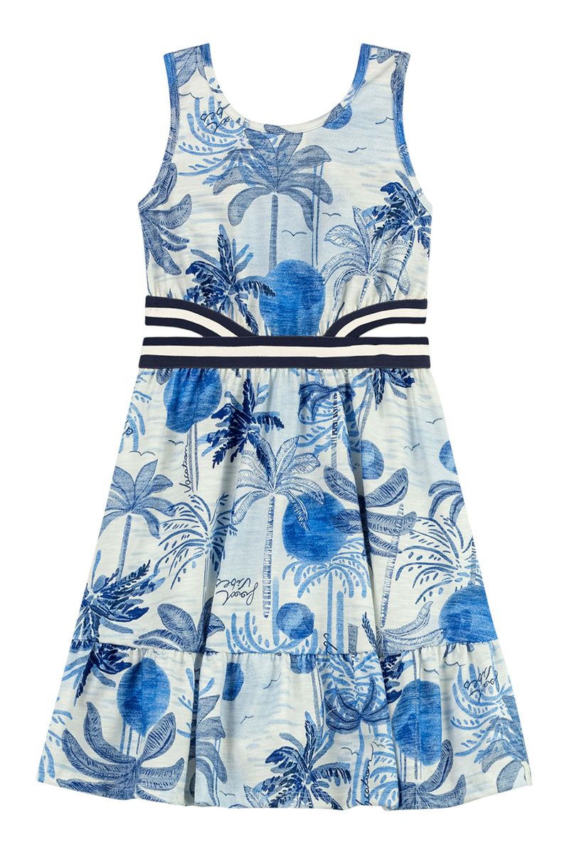• Feito em malha flamê • Possui alças • Possui modelagem soltinha com babados • Possui estampa tropical • Possui abertura lateral com elástico listrado • Ideal para passeios ou momentos especiais