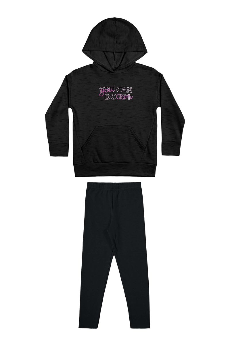 • Conjunto composto por blusão e calça • Feito em moletom rajado felpado e molecotton felpado • Possui mangas longas • Possui capuz e bolso • Estampa com brilhos e bordado em lantejoulas • Elástico no cós • Ideal para passeios e momentos de lazer