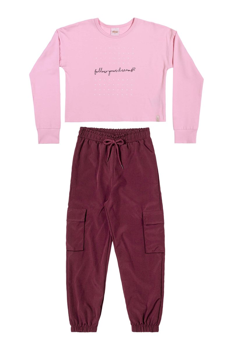 • Conjunto composto por blusa e calça • Feito em cotton leve e tactel com elastano • Possui mangas longas • Possui estampa frontal com strass • Possui elástico no cós e cadarço decorativo • Possui bolsos laterais com lapela • Ideal para momentos de lazer