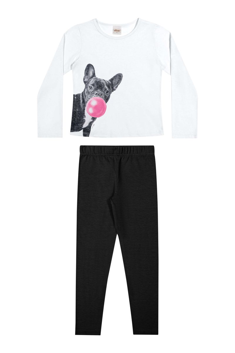 • Conjunto composto por blusa e calça legging • Feito em meia malha e cotton leve • Possui mangas longas • Estampa frontal • Elástico no cós • Ideal para o dia a dia