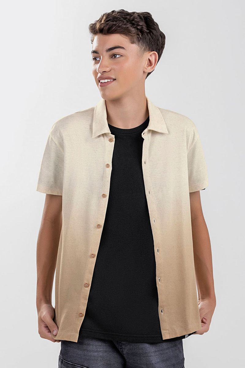 JuvenilMasculino JuvenilCamisas e Polos MasculinoCamisa Juvenil Menino Degradê Malha Linho Beats Bege